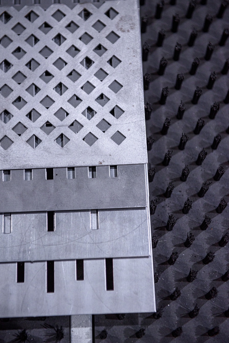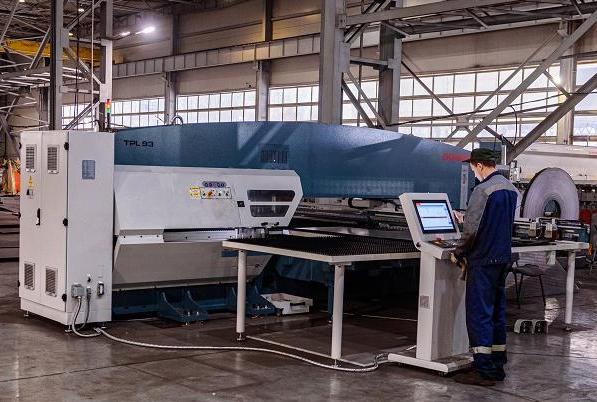 На заводе используется высококачественный станок Durma, который обрабатывает металлические листы форматом 6 000 х1 500 мм в толщинах от 1 до 4 мм. Технологические возможности оборудования позволяют выполнять круглые отверстия, пробиваемые одним ударом, диаметром 4, 9, 11, 13 мм. Криволинейные отверстия шириной от 4 мм выбиваются серией ударов круглым пуансоном меньшего диаметра.